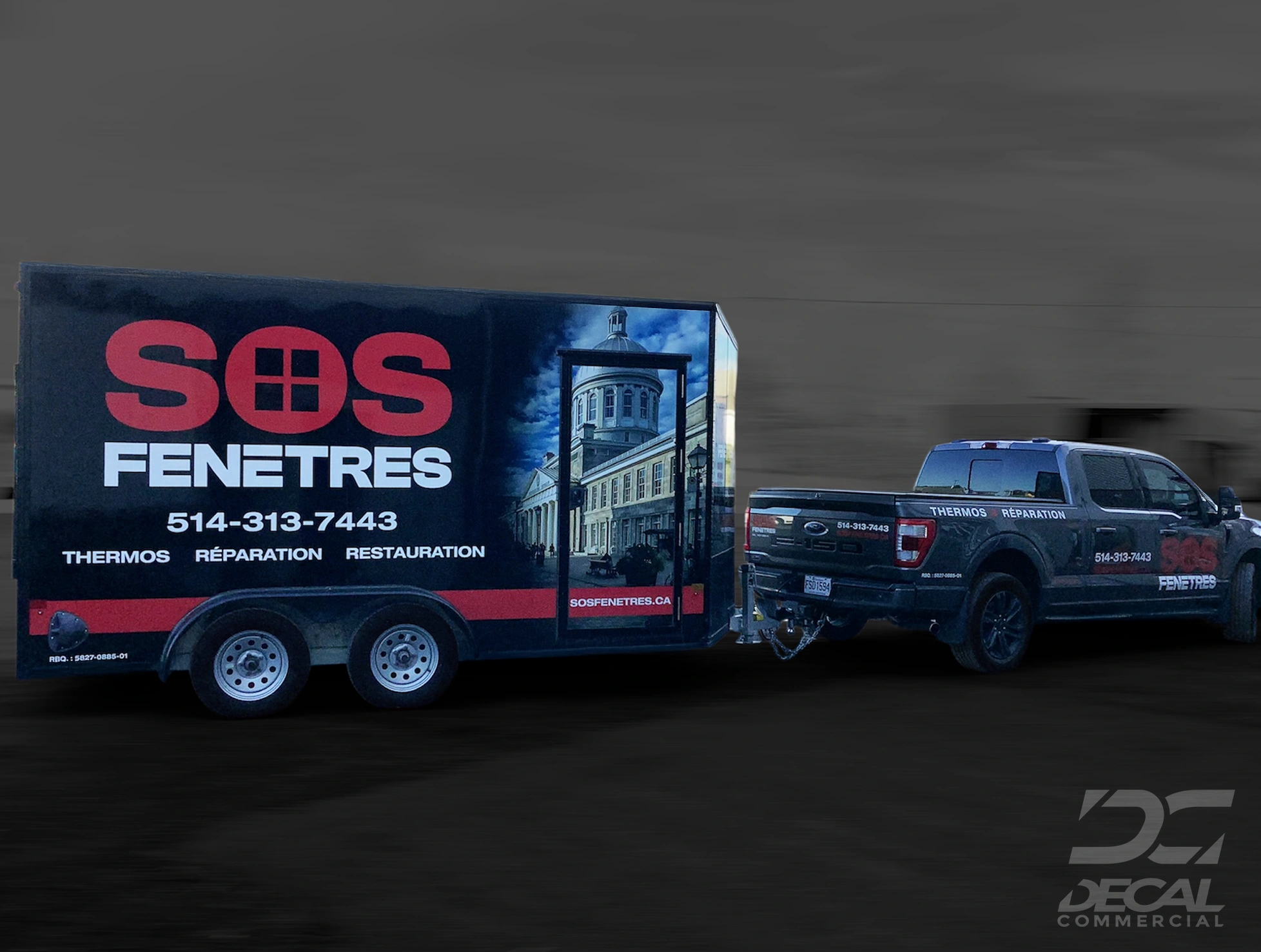 Pour compléter le tout, un lettrage partiel a été effectué sur le Ford F-150 et le Mercedes Sprinter pour garantir une parfaite harmonie visuelle avec la remorque.